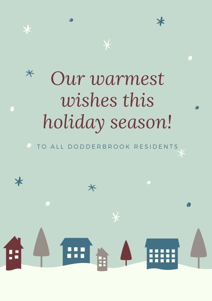 Finally the Dodderbrook Residents Association AGM will be held in the new year and we ask residents to consider joining the committee. We will keep you posted once we have more information.